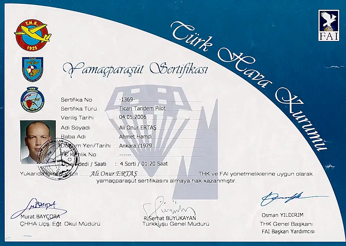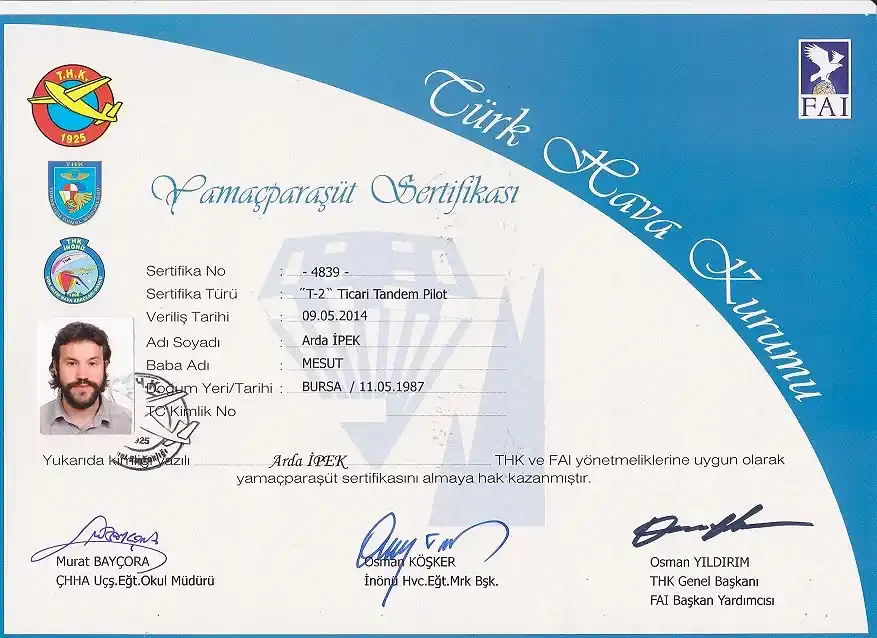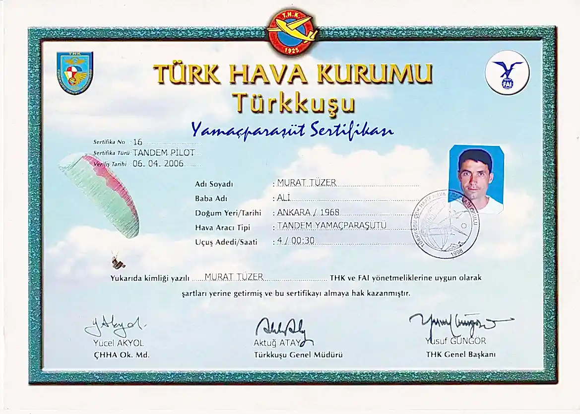 Her yolcu uçuştan önce bilgilendirilir ve bir kask ile uçuş kıyafeti verilir, ayrıca bütün pilotlarımız güvenlik açısından yedek paraşüt, iletişim içinse telsizle donanmıştır. Bütün bunların yanı sıra, sizi gökyüzüne çıkarmadan önce hava koşulları büyük bir dikkatle değerlendirilir.